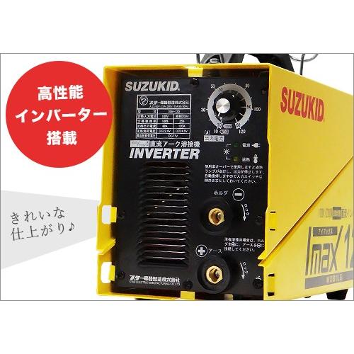 | 商品の特徴 | imax120 溶接機 本体のみ 新品 SUZUKID スズキッド 直流インバーター。スズキッド 直流インバータ溶接機 IMAX120。スター電器 スズキッド imax120 直流溶接機。。3. 100V/200Vどちらでも使用できて、しかも入力電圧を感知して自動で切替!!4. 業務用の一般溶接棒が200Vだけでなく100Vでも使用可能!!5. 200V電源で最大3.2φ、100V電源で最大2.0φの溶接棒が使用可能!!。1. インバータ溶接機専用溶接棒スターロードGM(鉄用)・GS(ステンレス用)の1.0φ/1.2φを使用すれば、0.8mmの薄板溶接もOK!!2. 100V・15Aコンセントから、板厚0.8mm~3.0mmまでの溶接ができます。未使用・即納】SUZUKID Imax120 直流インバーター溶接機 付属品多数 | ||
